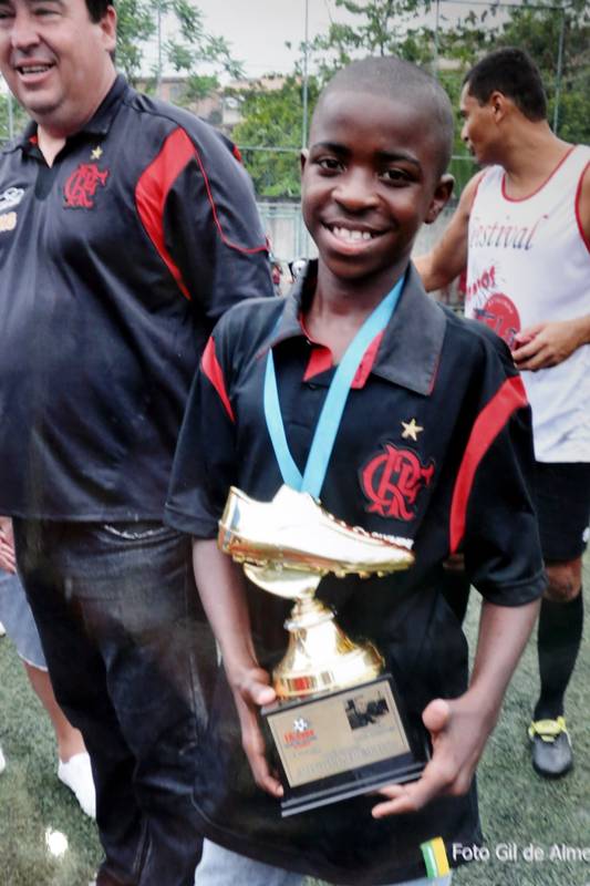 Vinicius Júnior com o ltroféu quando criança Foto: Marcelo Theobald